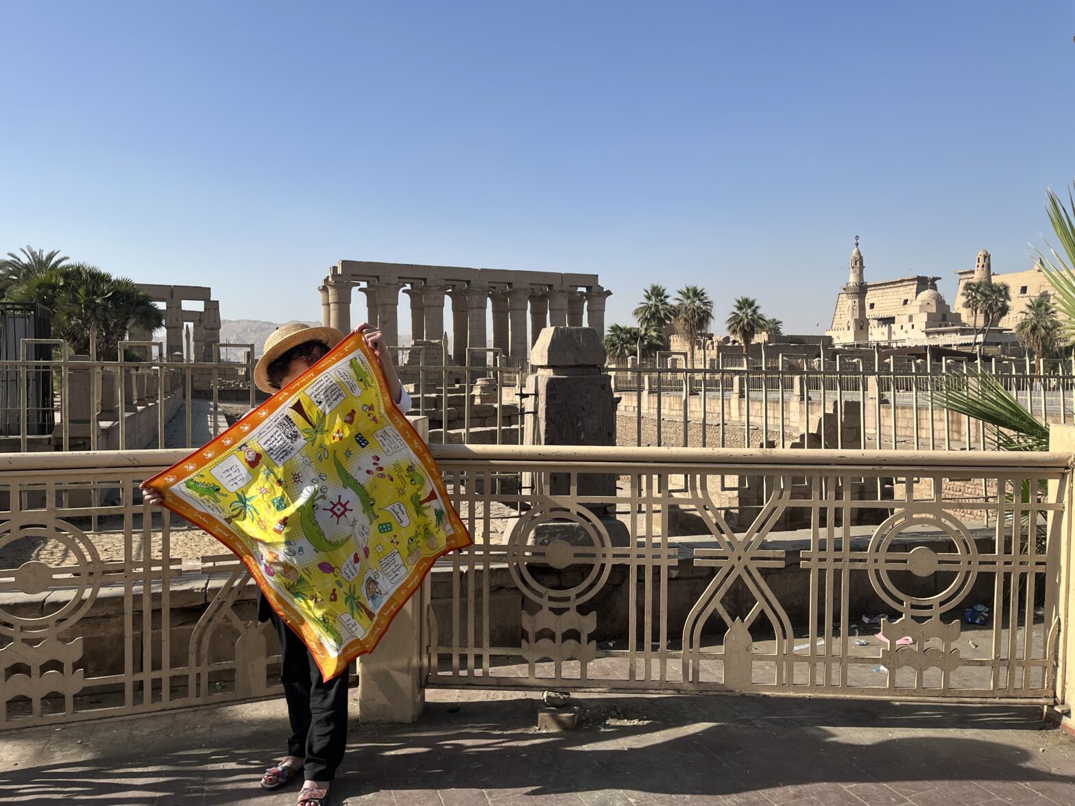 In Luxor, Ägypten, präsentieren wir das neue Seidentuch der Zufallsproduktion! Voller Krokodile, Skarabäus-Käfer und Drogen, warm und weich, schmeichelnd und originell. Es putzt ungemein, würde Grünlich sagen. Und es ist kontaktfreudig: jeder kuschelt sich an einen heran, um die Texte zu lesen! Das Seidentuch entstand für die Marien Apotheke, zu Ehren des Apothekenmaskottchens, einem Nil-Krokodil.… Tie a Yellow Ribbon round the old Ramses Column… weiterlesen