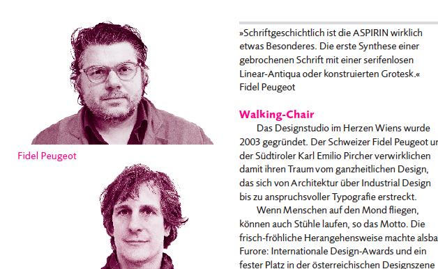 ein Handout für die ASPIRIN®, eine Schrift von Fidel Peugeot / Walking Chair. Hier haben wir es Schwarz auf Pink: